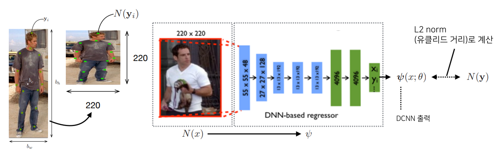 원본 이미지 x를 Pose Vector y로 회귀하는 함수 ψ(x;θ) ∈ $R^{2k}$을 학습하고 싶다.(k : 관절 수)