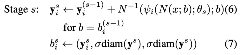 $N^{-1}$(ψ(N(x;b);θs); b) : 추정된 변량을 절대적인 이미지 좌표로 변환