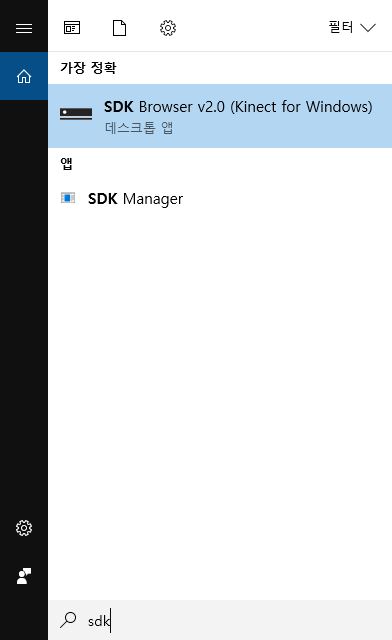 아래 그림과 같이 SDK Browser v2.0(Kinect for windows)를 실행합니다.