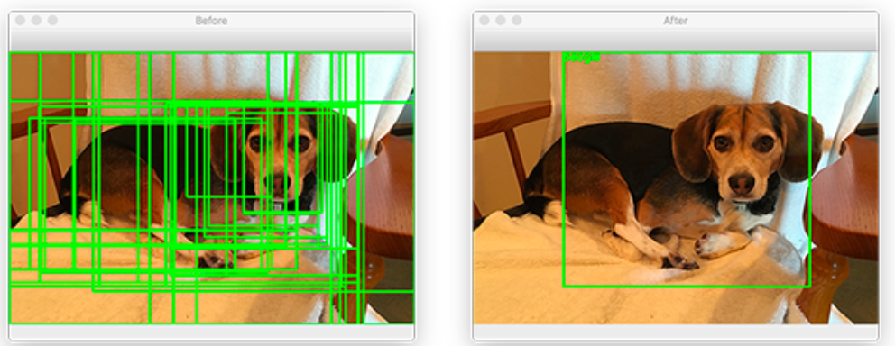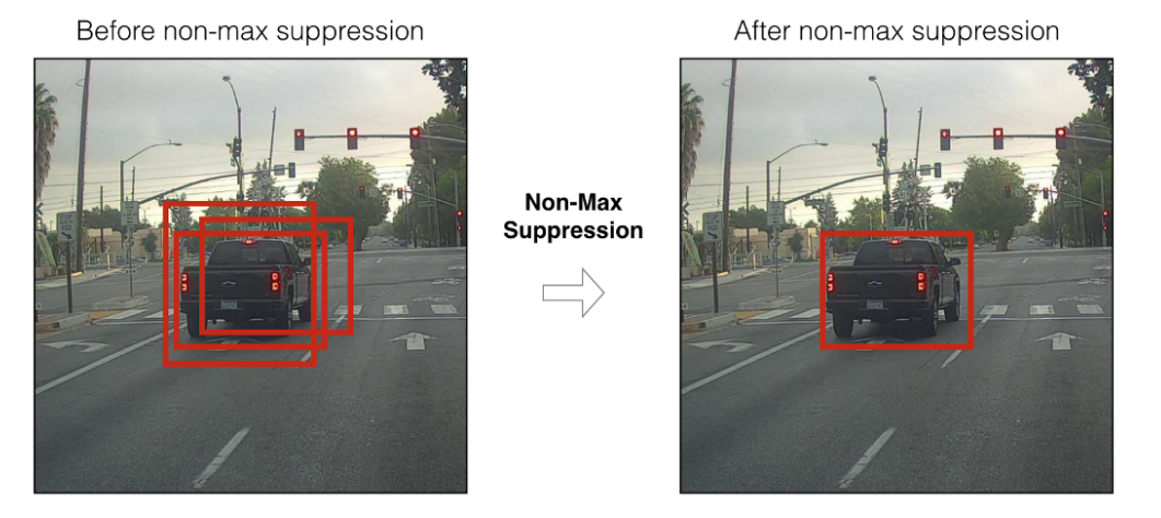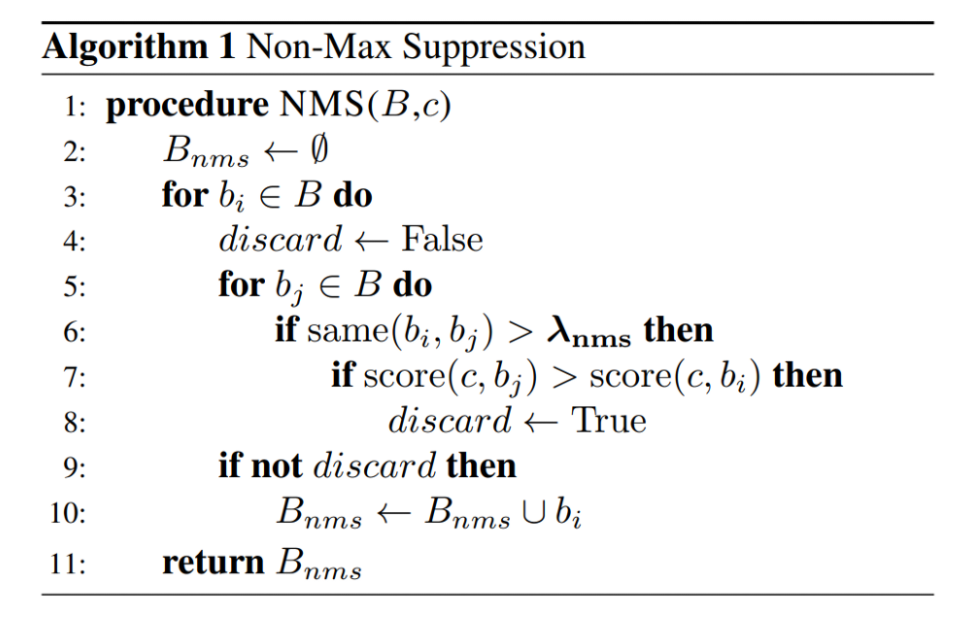 이제 이 제안을 모든 제안과 비교한다. 이 제안의 IOU(Intersection over Union)를 다른 모든 제안과 함께 계산한다. IOU가 임계 값 N보다 큰 경우 B에서 해당 제안을 제거한다.