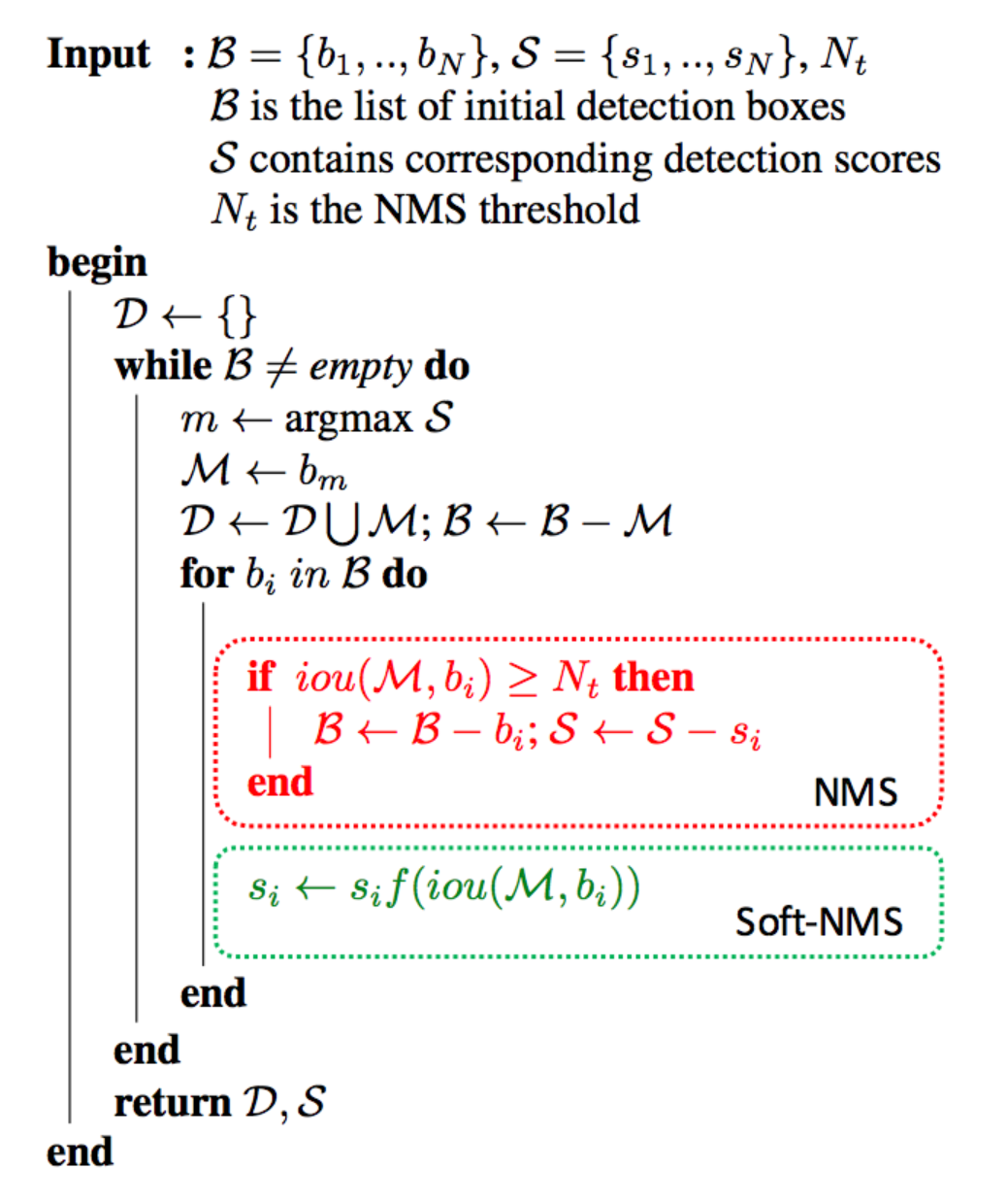 Paper : https://arxiv.org/pdf/1704.04503.pdf 불러오는 중입니다... Soft NMS 기존 NMS 는 가장 높은 confidence 를 가지는 bbox 를 찾고, 같은 클래스 인 bbox 들 중 겹치는 영역이 일정 비율 이상인 (iou > th..