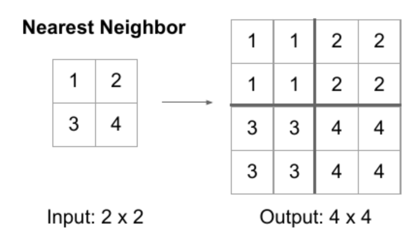 Nearest Neighbor는 Dense 데이터를 그대로 늘려서, 빈 구역에 채워 넣는 방법이다. upsamling에도 다양한 기법들이 있지만 저자들은 단순함을 위해 위 기법을 채택했다고 한다.