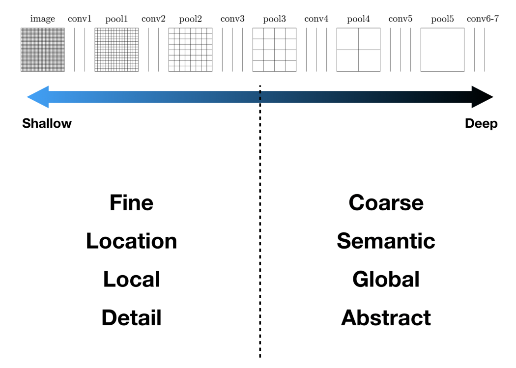 정확하고 상세한 Segmentation을 얻기 위해 Deep&Coarse(추상적인) 레이어의 의미적(Semantic)정보와 Shallow&fine층의 외관적(appearance) 정보를 결합한 Skip architecture(얕은 층의 fine location 정보와 깊은 층의 global semantic 정보를 결합하는)를 정의한다.
