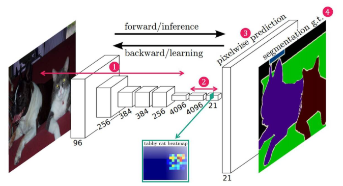 Fully Convolutional networks(이하 FCN)은 제목에서 나타나듯 Semantic Segmentation문제를 위해 제안된 딥러닝 모델이다. Semantic Segmentation은 단순히 BB(bounding box)을 하는 문제가 아니라 이미지를 pixel단위로 구분해 각 pixel이 어떤 물체 class인지 구분하는 문제이다. FCN은 기존에 이미지 분류에서 사용된 CNN기반 모델(AlexNet, VGG, GoogLeNet)을 Segmentation 목적에 맞춰 마지막 출력층 FCL(Fully Connected layer)을 FCN으로 대체하여 문제를 해결했다.