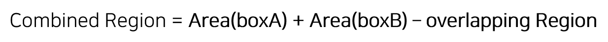 중첩 영역 계산을 이용하여 구한 Overlapping region과 박스 A, 박스 B 값을 이용하여 결합 영역을 계산한다.