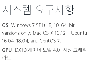 유니티는 윈도우, 맥OS, IOS, Android 등 27개의 플랫폼에서 사용 가능한 콘텐츠를 만들 수 있고 제작 도구인 유니티 에디터는 윈도우와 맥OS를 지원한다.