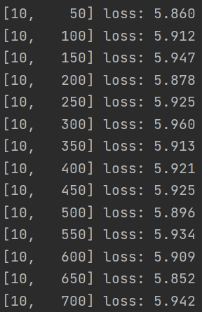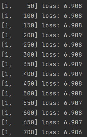 if i % 50 == 49: # print every 2000 mini-batches