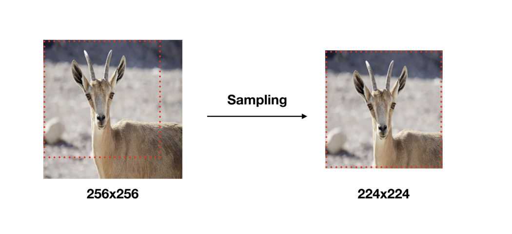 VGG는 Training 입력 이미지 크기를 224 x 224로 고정했다. 학습 이미지는 각 이미지에 대해 256 x 256 ~ 512 x 512내에서 임의의 크기로 변환하고, 크기가 변환된 이미지에서 개체(Object)의 일부가 포함된 224 x 224 이미지를 Crop하여 사용 했다.